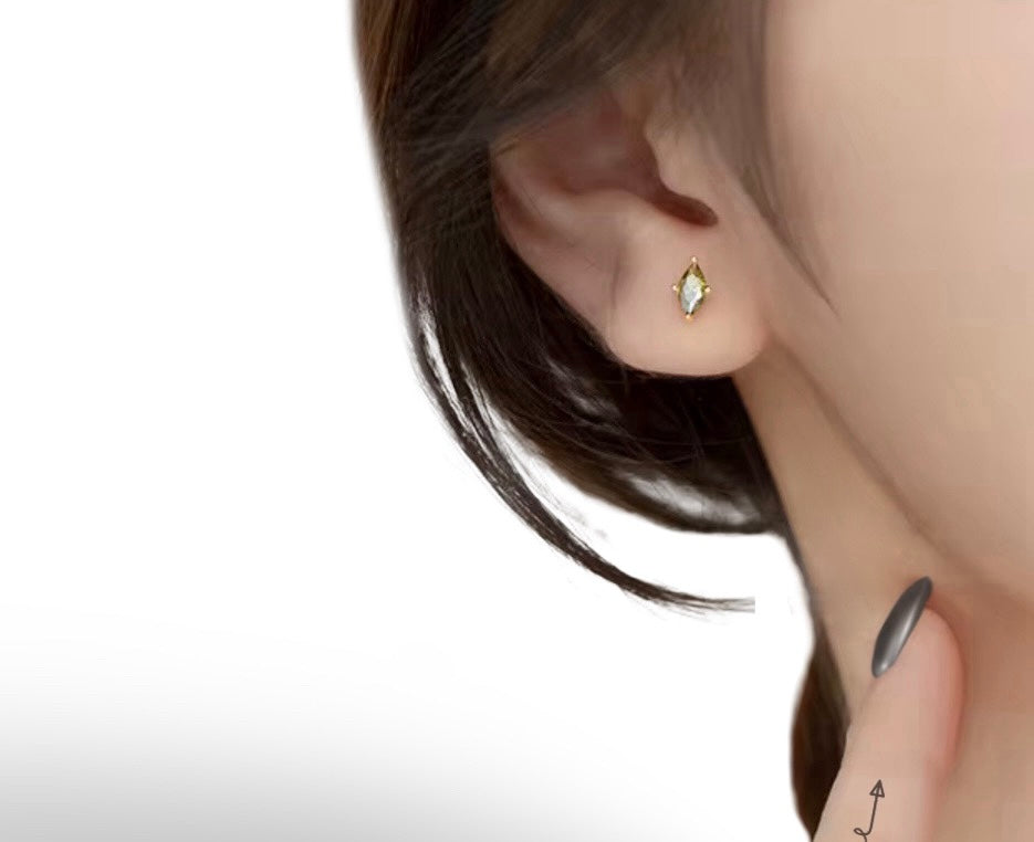 Olive green eye studs Sterling silver